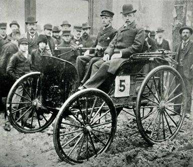 Few Chicagoans may be aware that the first automobile race to occur on this continent was held locally, from a site in Jackson Park, just south of the Museum of Science and Industry, to Evanston and back. This event occurred on Thanksgiving Day in 1895 and was second only to a race held in France in 1893. Herman H. Kohlsaat, publisher of the Chicago Times-Herald saw that such an event could generate interest in the automobile in this country. In June of 1895 he announced that the newspaper would sponsor a race in Chicago with $5,000 in prizes, including $2,000 for the winner. Various accounts state that between 60 and 80 entrants applied, but the race was postponed twice because few were ready. It was finally held Thanksgiving morning of that year, following an overnight