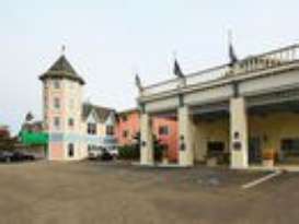 The hotel is huge and pink. And there is art on every corridor wall of all three stories, most of automobiles that are now considered classic though the posters and other advertising were once contemporaneous with new vehicles. There is a lounge, restaurant, pool, fitness room and sauna, besides really nice rooms. One suite was used by Charles Lindbergh when he worked at the Ford Motor Company building airplanes in WWII.