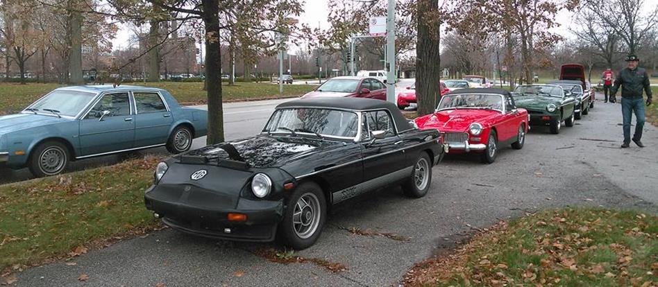 To be driving our cars after most everyone else has stopped driving theirs is quite a thrill. The CMGC have a traditional ‘top-down’ cruise to celebrate the first automobile race in America on Thanksgiving Day in 1895. This year was no exception. Members of the CMGC met at the historical race monument (the rock) at the west side of the Museum of Science and Industry in historic Hyde Park.