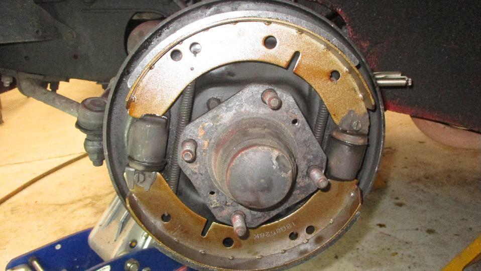 Next day we were back in Columbus to borrow Phillip Clark's garage to catch up some maintenance work on my MGA. Time to repack the front brake slave cylinders and install new brake shoes. Incidentally, we found a slightly loose RF outer wheel bearing which needed to be "glued" back into the hub with Loctite 620 bearing set adhesive. I had to replace a ruptured steering rack