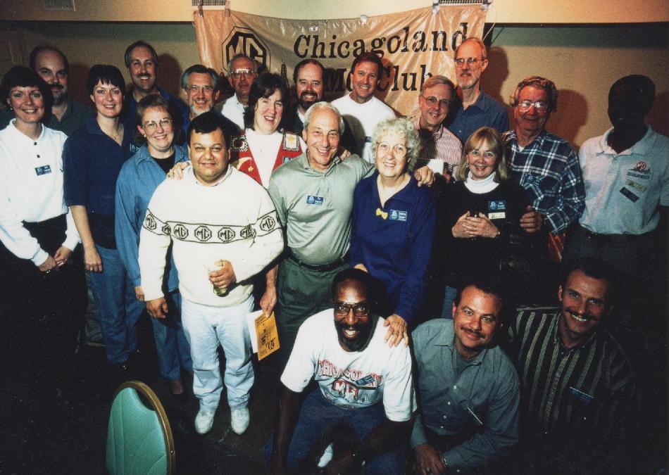 In the awards presentation at our Holiday Party, I introduced a few “Original Members”: Bill Cooper, Gene & Becky Cooper, and Jake & Ann Snyder. Some were even wearing their blue Original Member name tags. Unfortunately, I forgot Jeff & Sharon Powell who where also present. The “Original Members” go back to our 20th Anniversary celebration on October 21st, 1996, at the same location where we still meet, and the same location where the first club meeting was held on October 28, 1976, Mack’s Golden Pheasant in Villa Park. (from the mid-80’s to the early-90’s the meetings traveled around but eventually returned to Mack’s) We recognized a group of members from the early years and who were (at that time) still active in the club. We presented them with a blue Original Member name tag as can be seen in this photo. Although some of the “Original Members” have passed away and we lost contact with a few, it is still interesting to see who they are and who are still actively participating in the Chicagoland MG Club. Next time you see a blue badge or recognize on of these, you know who they are and I‘m sure that they’d be happy to dig-up dome told stories.