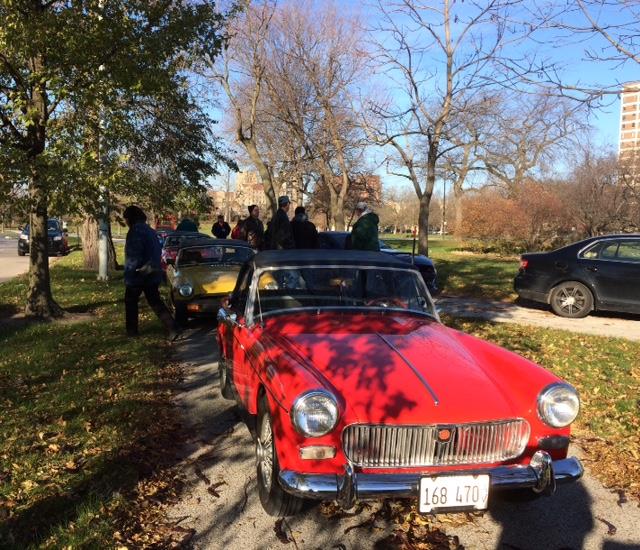 A dedicated group of Chicagoland MG Club members have gathered at the corner of South Cornell and eastbound Midway Plaisance every Thanksgiving morning since 1995, the year of a centennial observance of Times-Herald Race -- the first automobile race on this continent.
