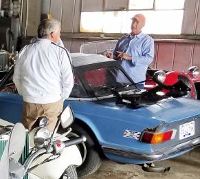 There is something our Triumph members would like to hear (are you listening Steve?). Richard doesn't just do high-end classics but he almost restores Triumphs and from what I saw there a lot of 6-Packs (the car in the foreground shop pic and those below are a few. The gray and dark blue ones are his work too).
