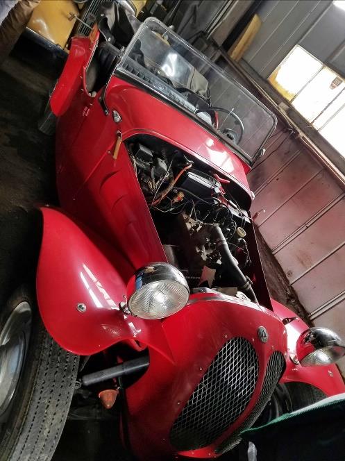 After visiting Richard's shop we all caravanned to a Garage rented by Richard. Between the warehouse and ground there were probably 50-60 classic cars. To name a few (below) a mustard color 1957 Alva and a red 1947 Dellow. There were vintage MGs, TRs and TVRs.