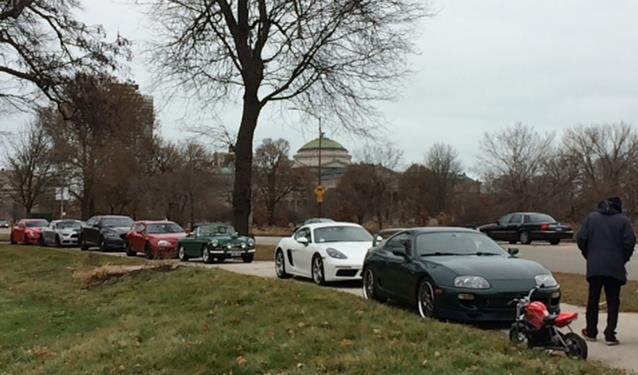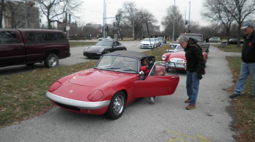 Thanksgiving morning temperatures were only a few degrees below normal this year and were warmer than last year, but perhaps the lack of sunshine was the reason that only nine Chicagoland MG Club members joined a larger-than-normal crowd in Jackson Park for the annual observance of the 1895 Times Herald Race. Those attending included David Newman (1979 MGB), Lisa & David Novak (1974 MGB), Liz & Steve LaFond (74 ½ MGB), Scott Fohrman (1969 Elan- though we all know he races a B and a J2), Doug Clark (1954 TF), and Ann & Jake Snyder (68 MG, already stored in Marengo).