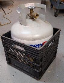Well, I have an easy fix...though it might not be completely illegal. Disclaimer: how you obtain the necessary component for this tip is all on you. I’m not recommending anyone steal anything. Fact is though, you’ve probably already committed the crime years ago and are already past the statute of limitations so I’ll continue. The tip is….plop the diabolically cylindrical and inertially unstable propane tank into a standard, everyday, ubiquitous plastic milk crate! (I don’t want to hear where the milk crate come from, ok?) Boom!