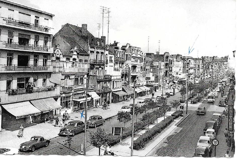 This postcard, from Knokke in Belgium, has a MGA Coupe in the lower left corner. The dark license plate probably indicates that the car is not from Belgium. Knokke is a popular beach resort town on the North Sea coast of Flemish speaking part of Belgium and within about an hours drive from The Netherlands, France and the ferry docks to England. Right behind the MGA are a V8 Buick and ‘Ponton” Mercedes with white wall tires. Ponton is the Dutch and German word for pontoon and it refers to the integrated design style of that era. Although most cars of the late 50’s and early 60’s have a similar style, I don’t remember calling any other car model of any other manufacturer by that name. But we always called this particular Benz the Ponton.