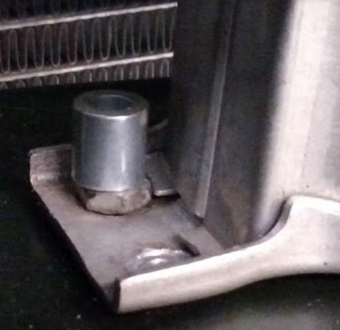Heat problems, you say? Not on my watch! Anyway….it was necessary for me to move the oil cooler forward to make room for the new fan. To do this I had to remove the grille. Whilst the grille was off I wanted to rehabilitate the cardboard air tubes that terminate behind the grille. All of this necessitated removing numerous nuts and bolts on the horizontal panel (floor?) behind the grille. The Moss Motors online catalog refers to this “floor” as the Radiator Duct Panel (hereafter referred to as RDP). The problem is that the bolts/screws of interest are installed from the top of the RPD while the nuts and washers are installed from the bottom of the RDP….underneath the car. Since my arms aren’t long enough to reach both areas at the same time I was forced to resort to alternative solutions.