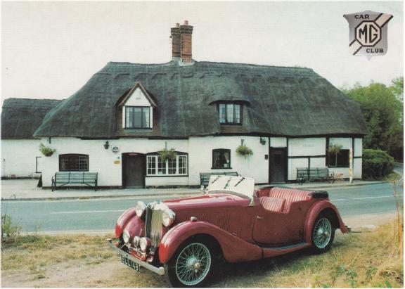 To stay with the UT in Karel’s postcard, here is a greetings card from the MG Car Club, with a YT in front of The Barley Mow just 5 miles East of Abingdon on the River Thames. The photographer was Neville Mariner. I don’t know when and why the card was published.