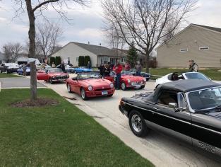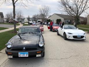Our destination was Del Webb in Huntley, IL. What a wonderful response for this event, 16 cars showed up! Some members with their MGs and others in everyday cars. It was an spectacular sight and I'm sure many residents in the community won't forget.