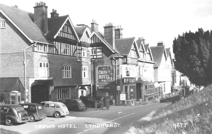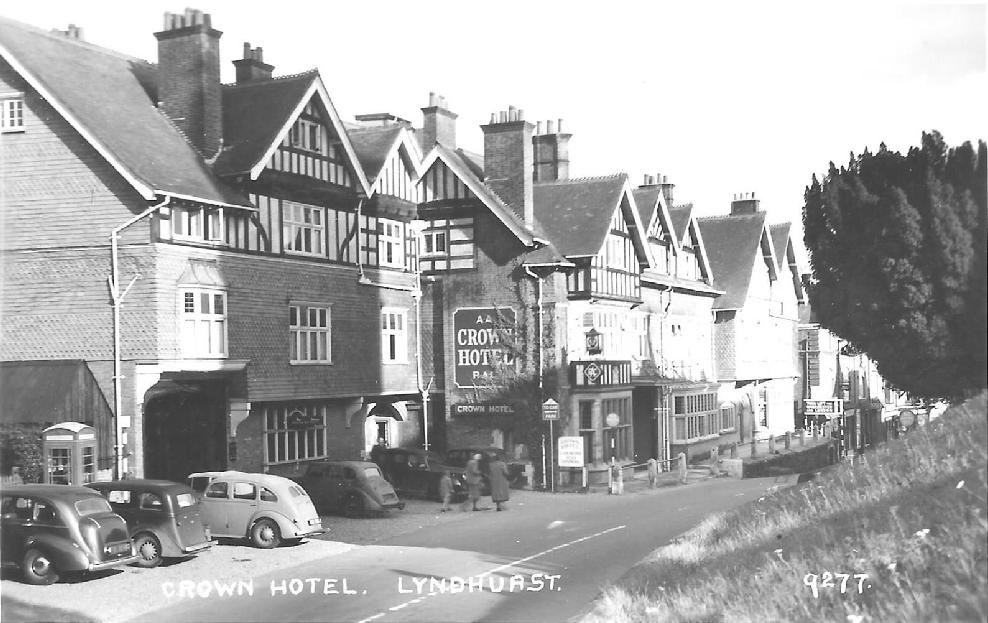 An MG Y-Type parked in front of the Crown Hotel in Lyndhurst, New Forest. The Crown Hotel is still in operation, now as the Crown Manor House Hotel. Anyone who visited Beaulieu in the New Forest in the South of England, either as a vacation destination, to visit the National Motor Museum, or to find MG parts at Beaulieu, the worlds largest British car parts swap-meet, may have driven through Lyndhurst, or even stayed at the hotel. There was a YA followed later by the YB but the two are only minimally different and mostly referred to Y-Type. The spare wheel was behind a separate cover under the trunk lid, which appears to be darker in this photo, which is too small to see why and what the object, that appears to be on the right side of the rear bumper, is.