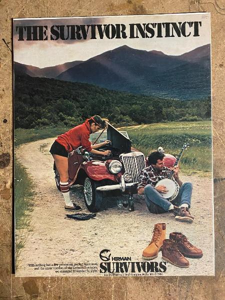 The young lady looks to be fiddling with the carbs on her TF 1500, while her companion admits to being no mechanic. With half a bottle of wine consumed and the empty glass on her side, she’s probably making things worse. They may be enjoying the long walk home in their new Herman Survivors.