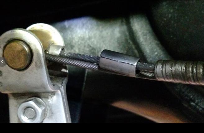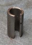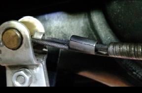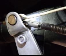 from the trunnion and inserted my newly fabricated spacer (see Fig. 2). With a pliers I squished the spacer to close up the gap so it wouldn’t fall off and also so it would fit into the counter-bore that the cable sheath normally fits into in the side of the trunnion. Of course, since I'm a hack, the spacer was a tad too large to fit into the counter-bore. Nonetheless, I figured it would still work so I tested it.