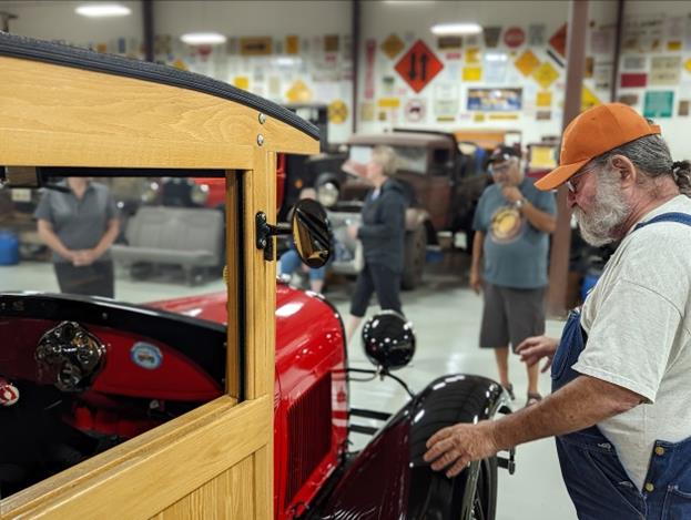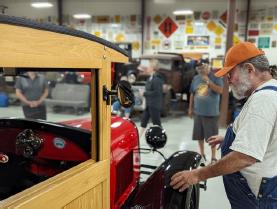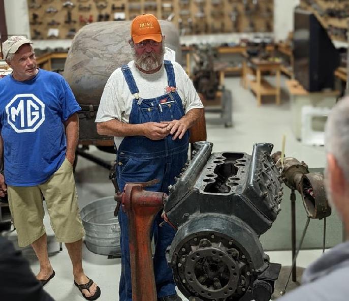 Jordon Beller, giving the history of one of the many engines being worked on for the museum.