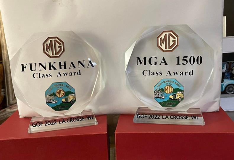 The banquet was lovely. Tom Wilson regaled us with great stories and wonderful pictures of Abingdon, and then it was awards time. Awards won by our two clubs were as follows: Jerry Cihak’s TF took first in class. The Hickenlooper’s MGA also took a first. The Wydra’s chrome bumper MGB took a class award. Steven’s Sparks Midget took the Midget award, and the Kalafut’s YB took the award for its class. Jolie Fredette earned the Ladies Choice award, and (Surprise!) because so many of us drove our cars, we brought home the Paul Johnson award. Again.