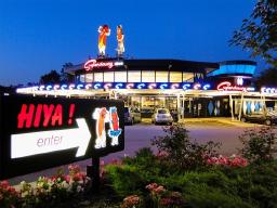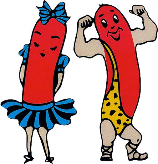 The iconic 12 foot hot dog sign perched atop both drive-ins.