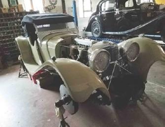 My interest was sparked by a tour Mark Davenport gave me several years ago of his dad’s restoration operation in Cambridge England. His dad, David, is known as the Jaguar restoration guru by Jaguar car and his operation consists of 7 outbuildings and 5-6 full time employees. The tour that Mark gave me was absolutely awe inspiring as there were perhaps 40 or 50 vintage Jaguar cars either finished (and stored in plastic bubbles) or in the process of. See pic to left.