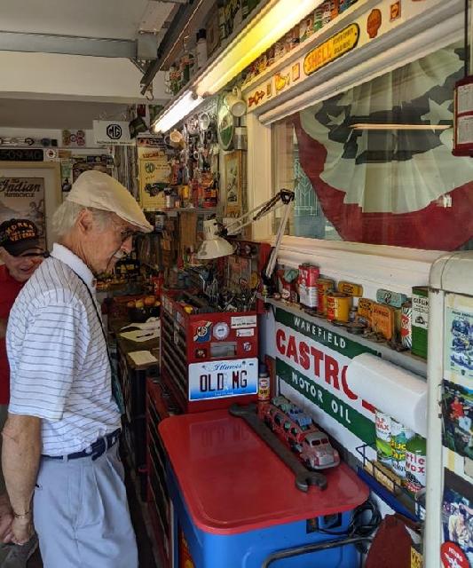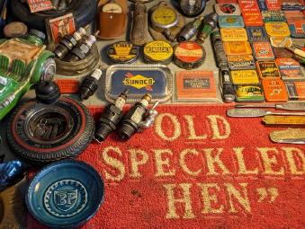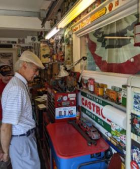 Shop talk abounds amidst the many exhibits of antique memorabilia..
