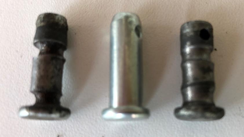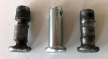 Two examples of clevis pin wear. New pin in middle