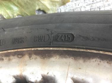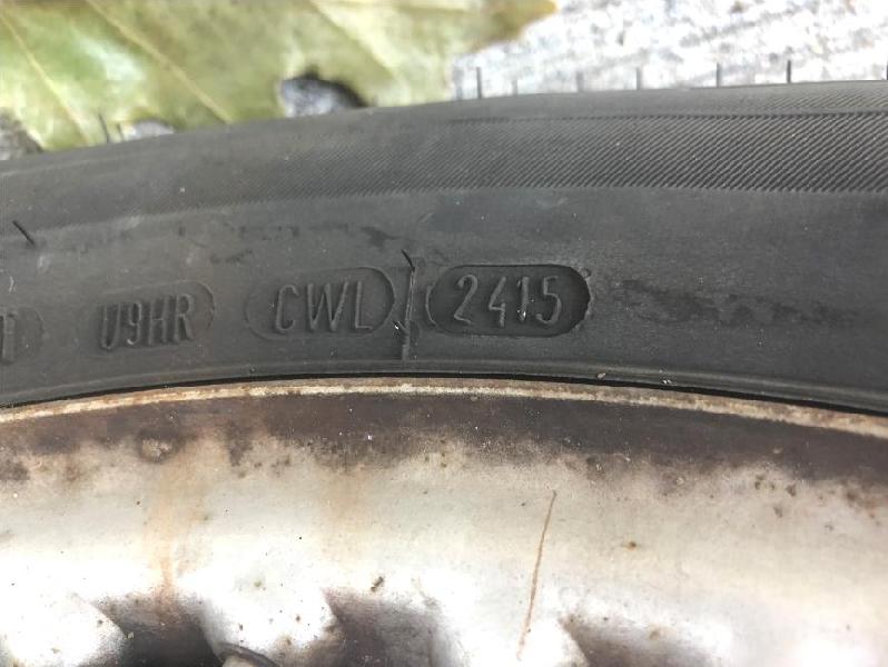 Tyres have a manufacturing date code molded onto one side of the sidewall. All our cars should have a four-digit code on them by now. A three-digit code means the tyre was made before the year 2000!!