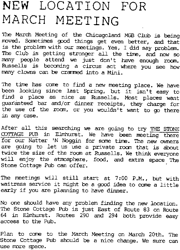 February 1989 - Chicagoland MGB Cub