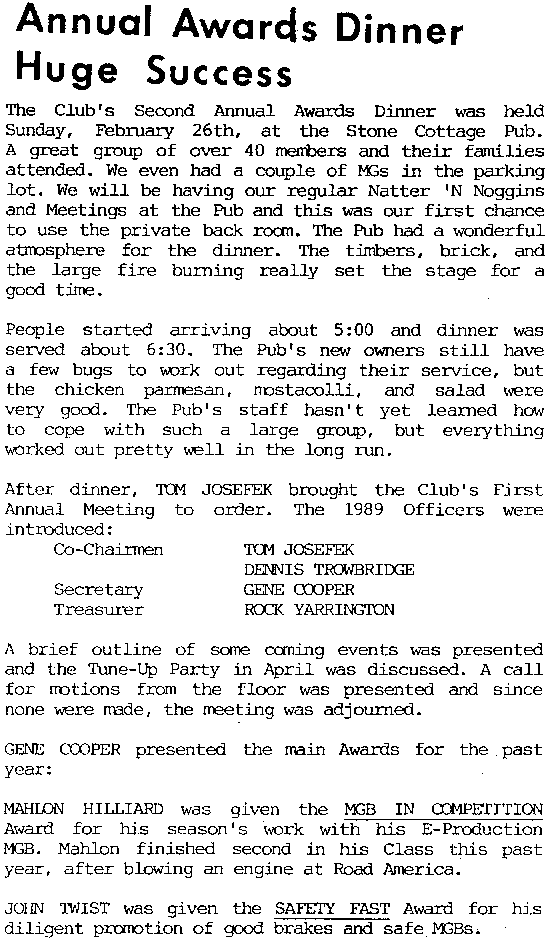 April 1989 - Chicagoland MGB Cub