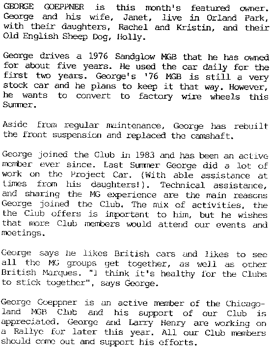 April 1989 - Chicagoland MGB Cub