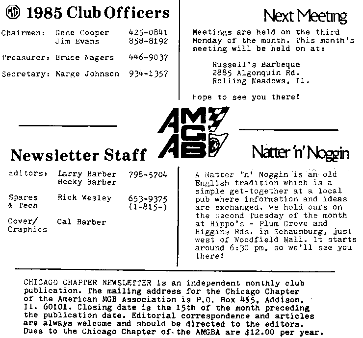 May 1985 - Chicago Chapter - American MGB Association