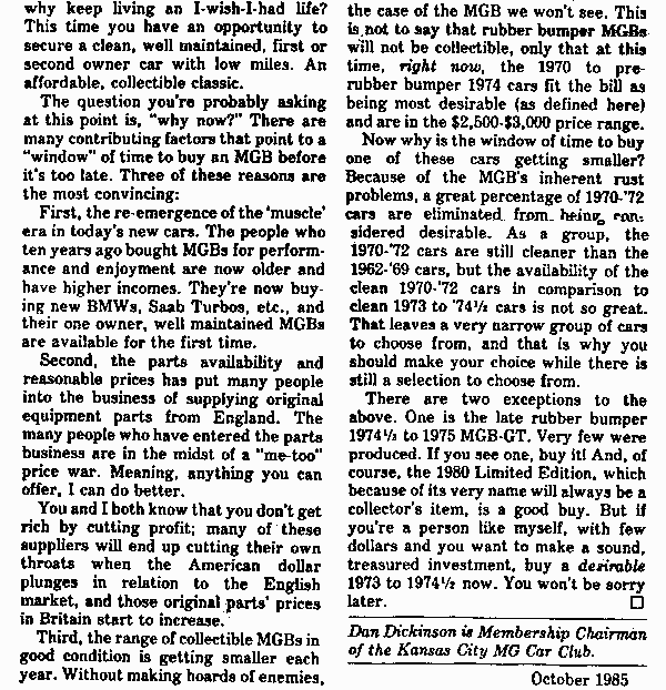 November 1985 - Chicago Chapter - American MGB Association