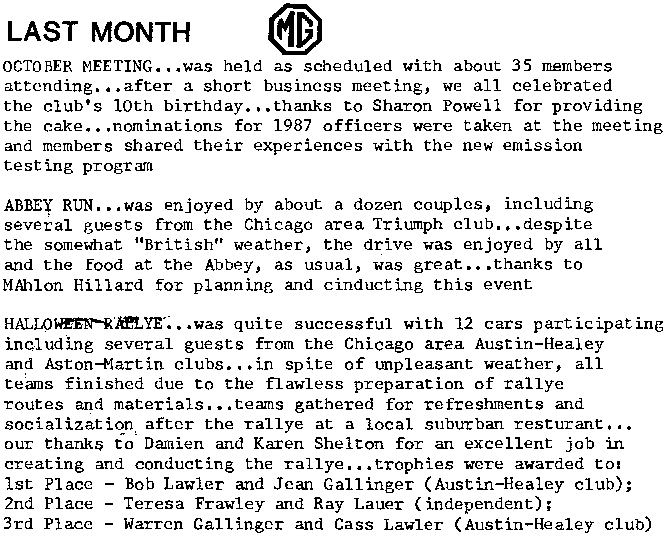 ©1986, 2006 Chicagoland MG Club, All rights reserved.