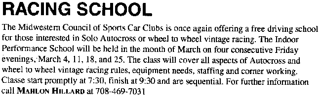 February 1994 - Chicagoland MGB Cub