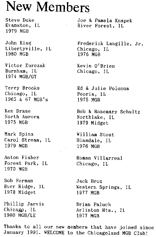 April 1991 - Chicagoland MGB Cub