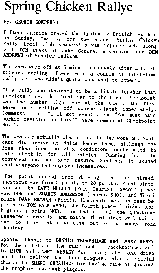 June 1991 - Chicagoland MGB Cub