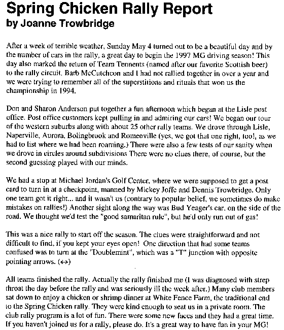 ©1997, 2006 Chicagoland MG Club, All rights reserved.