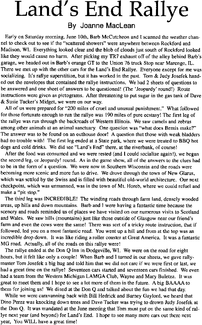 July 1995 - Chicagoland MGB Cub