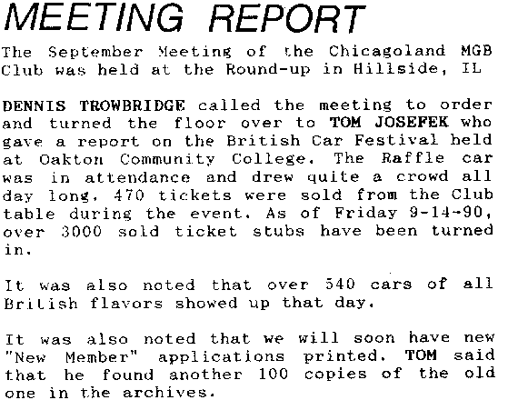 October 1990 - Chicagoland MGB Cub