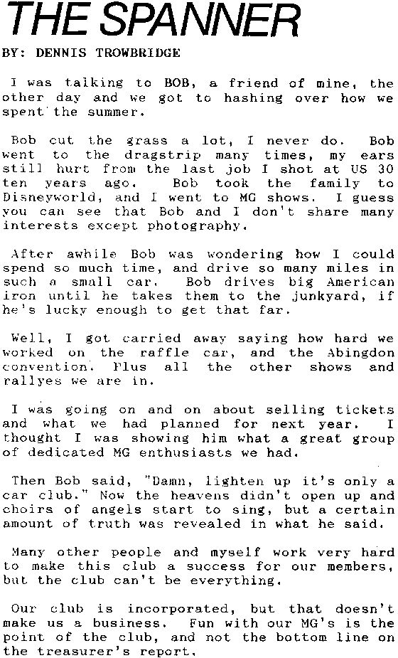 November 1990 - Chicagoland MGB Cub