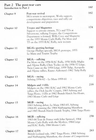 "This is the authoritative story of all the MGs prepared and entered by the MG Car Company and its successors in international competition from the 1920s to the late 1960s."