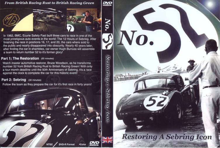 In 1962, BMC, Ecurie Safety Fast built three cars to race in one of the prestigious auto events in the world: The 12 Hours of Sebring. After finishing the race in positins 16, 17, and 20, the cars were sold to the oublic and nearly dissappeared into obscurity. Nearly 40 years later, after finding the car in shambles, car owner Hugh Burruss assembled a team to return number 52 to its former glory.