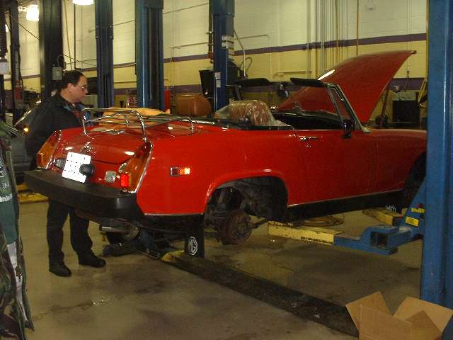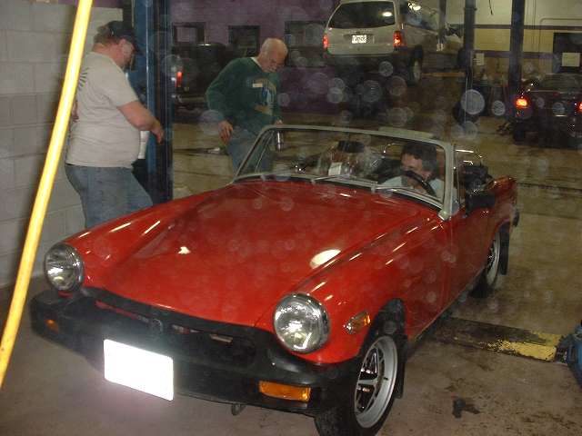 The rubber bumper Midget came in on a trailer. Rear brakes were very weak, and the fronts were locking up together after only a few hundred feet of travel.