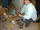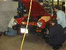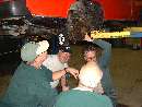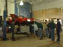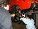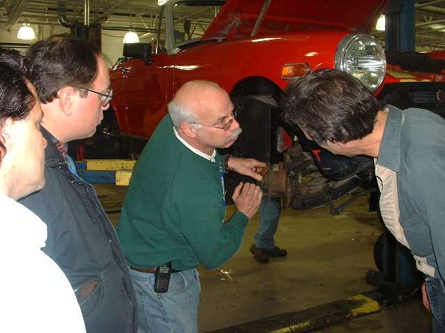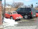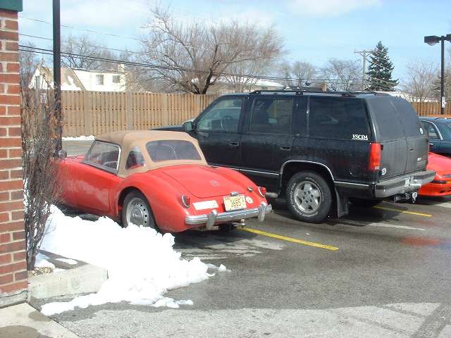 Well you can't all watch. Somebody has to work the bleed nipple. Let's leave the fronts for later. Slap those wheels back on and take it for a test run. Hot diggity, all is well! No lockups, no leaks, and it stops when you hit the pedal. Time for lunch at Portillos. And we notice that some of our winter vehicles are a bit larger than others.