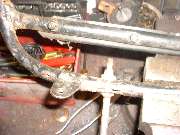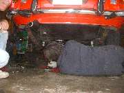 This is followed by grinding of the welds with the pedestal grinder, a 4-inch angle grinder, and finally a high speed die grinder with 2-inch sanding disc. The idea is smooth out the welds so they become invisible, but also that smoothing the metal removes divots and cracks and maybe pin holes in the welds that could be stress risers, and thereby reduce probability of future crack failure. A couple minutes with a rattle can and primer paint, and then back to lending a hand with final assembly and oil filling on the white car. After about 10 minutes we figure the primer is dry enough to overcoat with rattle can black, and 10 minutes later it's time to reassemble the seat cushion and cover. Yes things are still a little sticky, but it has been a long day, and we are somewhat impatient, and no one will see the paint job under the seat anyway. Score one more successful tech day, and several MGB with a clunk removed.