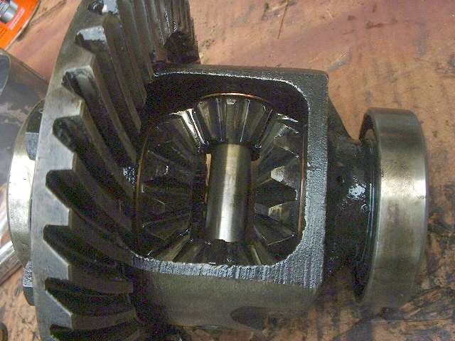 Once the oil is drained and rear cover is removed, the red and green cars and the C axle all required ViceGrips and the slide hammer to extract the pinion shaft from the differential, much to my surprise. Otherwise the rest of the work was progressing nicely. With one half shaft out and pinion shaft removed, the planet gears orbit a bit and literally fall out in your hands. Slide one sun gear over to be removed along with the flat thrust washer (if the worn thrust washer is even still present), then slide the second sun gear off of the remaining half shaft splines. Good time to clean out the Axle housing, and then "reassembly is the reverse of disassembly". The only trick is getting the two planet gears installed exactly 180 degrees across from each so the bores align to accept the pinion shaft.
