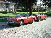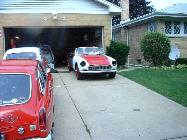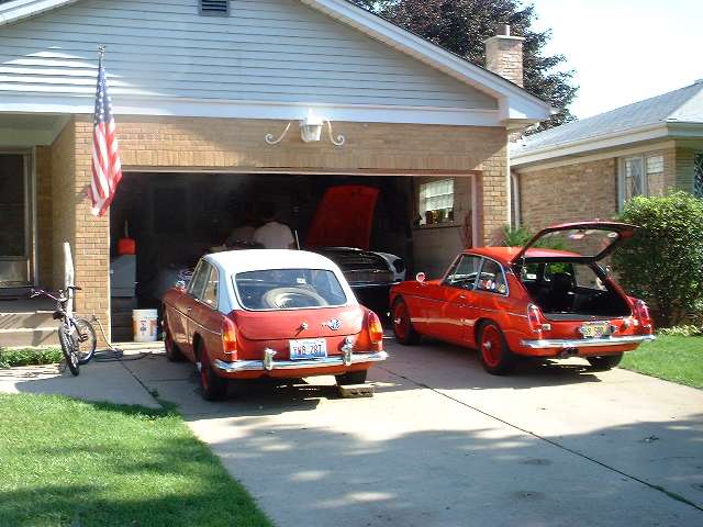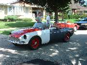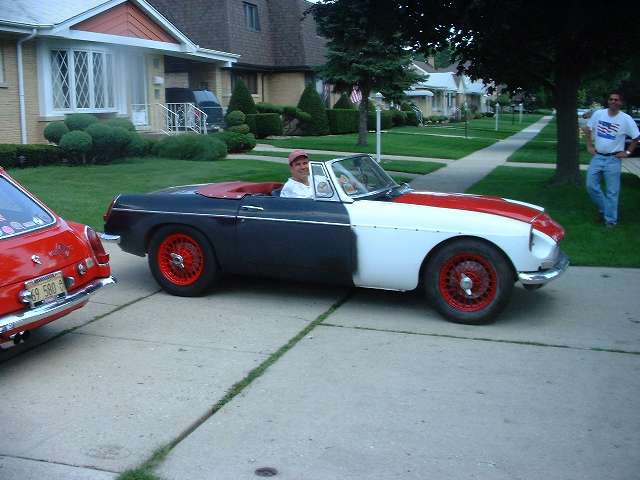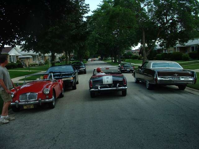 Residents on the left, visitors on the right. There was a small diversion out front while the help was accumulating. Jim Dade's 1965 MGB was in good form for being all original.