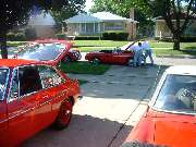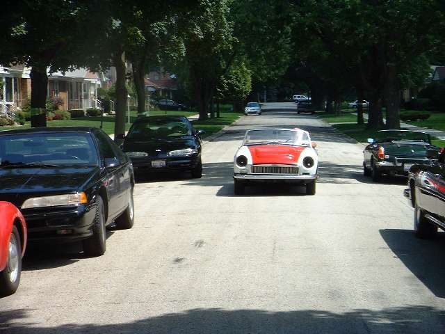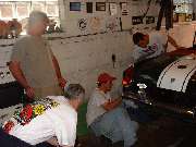 Mind you this car had not moved under its own power for 29 years, but now it was raring to go. The drive train, brakes and suspension all worked flawlessly on the first run down the block and back, resulting in grins all around. So Bob decided to go for a little longer run, was gone for about 10 minutes, and luckily missed the local cop by all of 10 seconds on his return. So we have another all round successful tech session. About all the car still needs is the headlights, and registration. Well, okay, maybe it should get a paint job too. It probably won't be out for Abingdon Summer Party on the coming weekend, but will likely make it to the Brithsh Car Festival next month. |