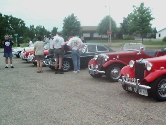 Ten cars left from Monroe, Wisconsin on a 24 hour run to St. Paul at 8:30 this morning. Four TD's, two B roadsters and a V-8 GT, two A Coupes, and a ZB Magnette. No Spridgets.