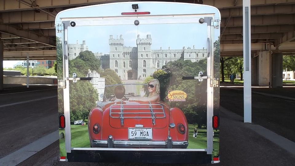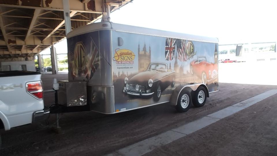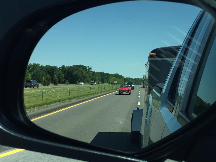 There was a current issue Turbo-Z trailer, quite popular these days. I wish I had measured height of the duck tail spoiler to see if it might be too high for the dash mounted rear view mirror. The GT had the "oops" flat tire.