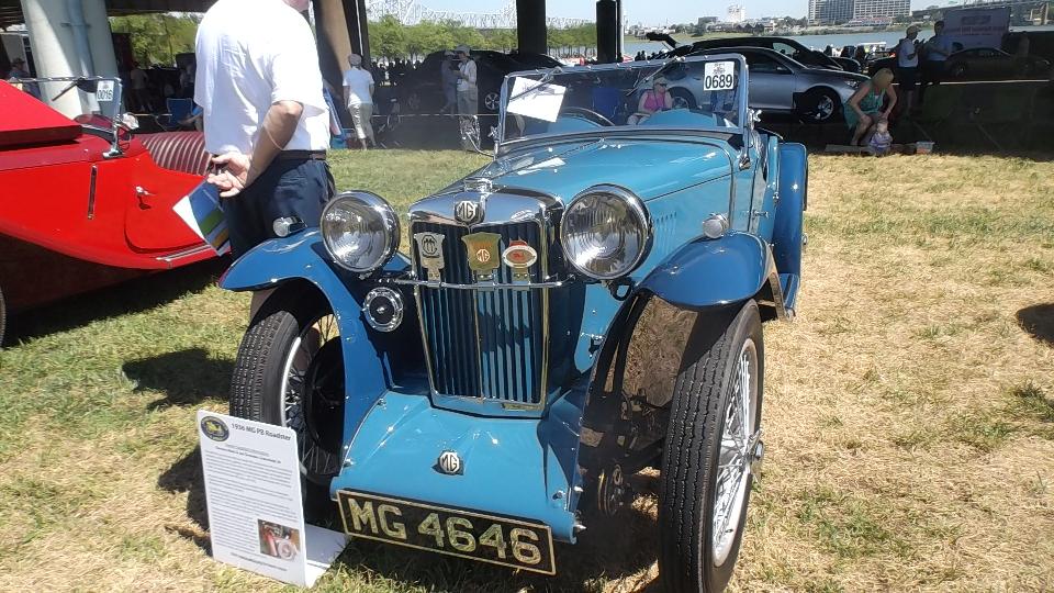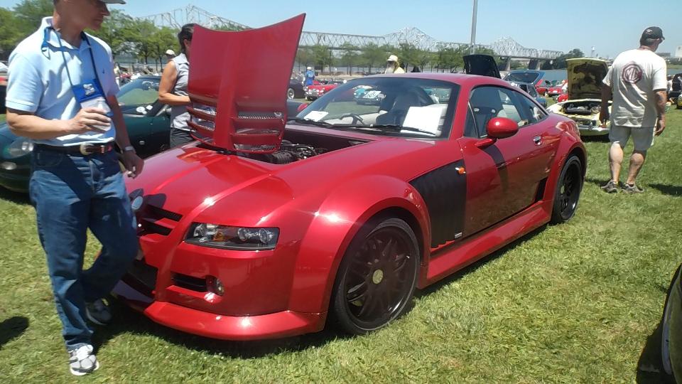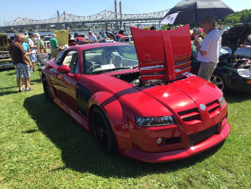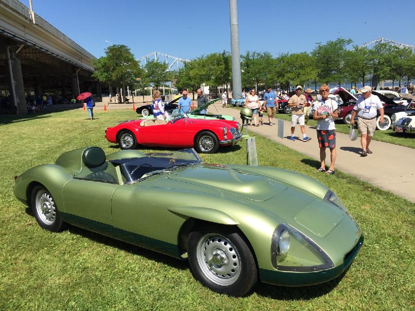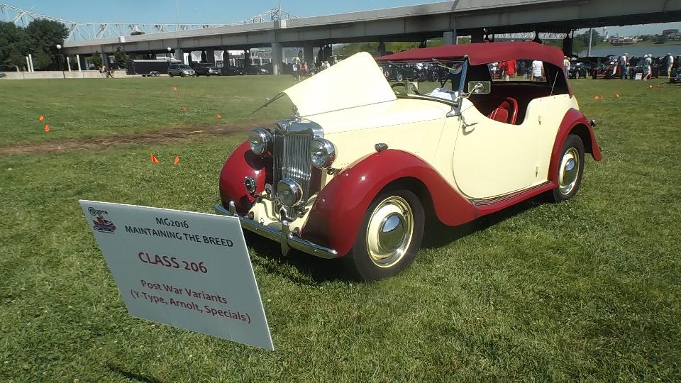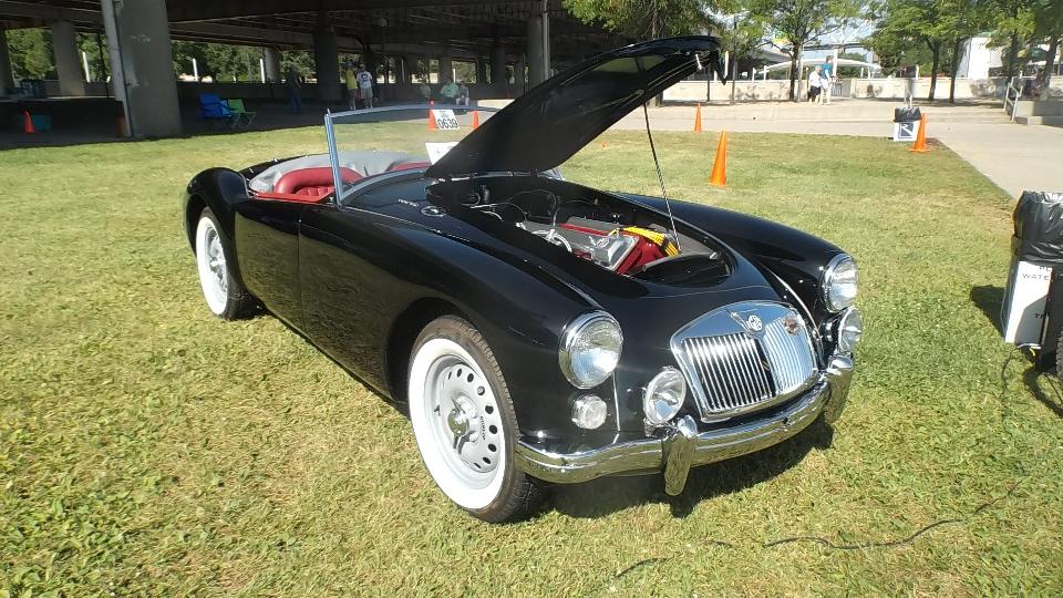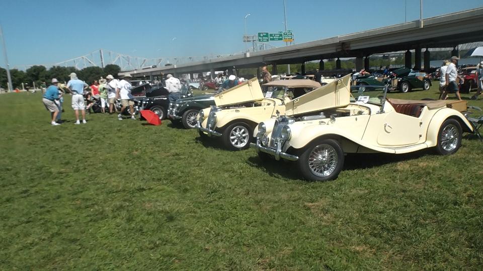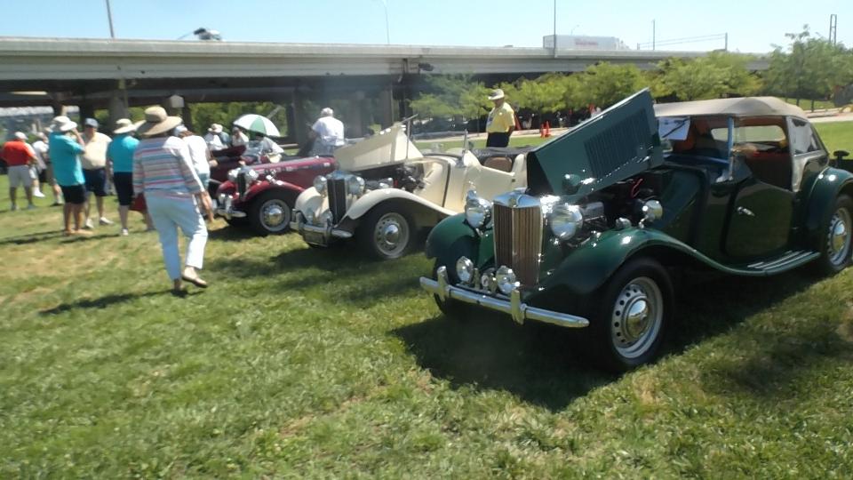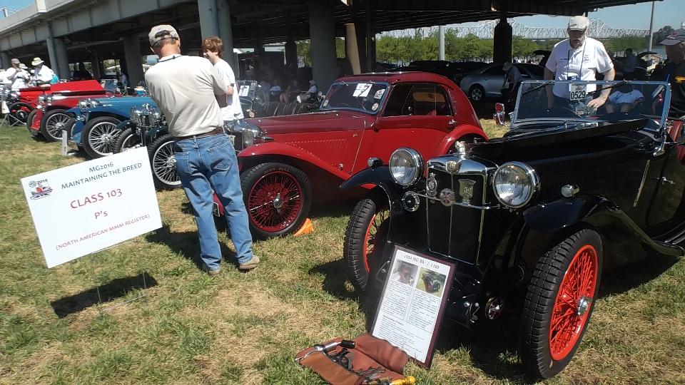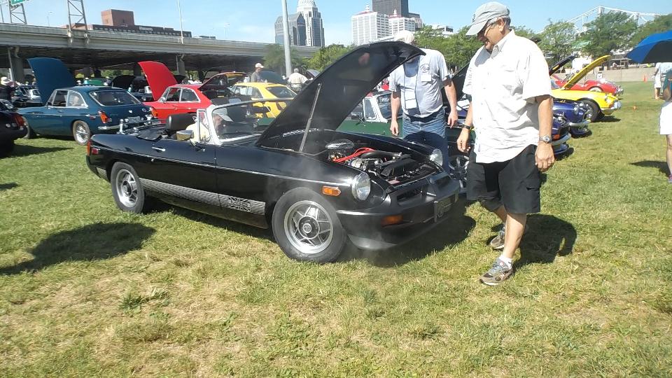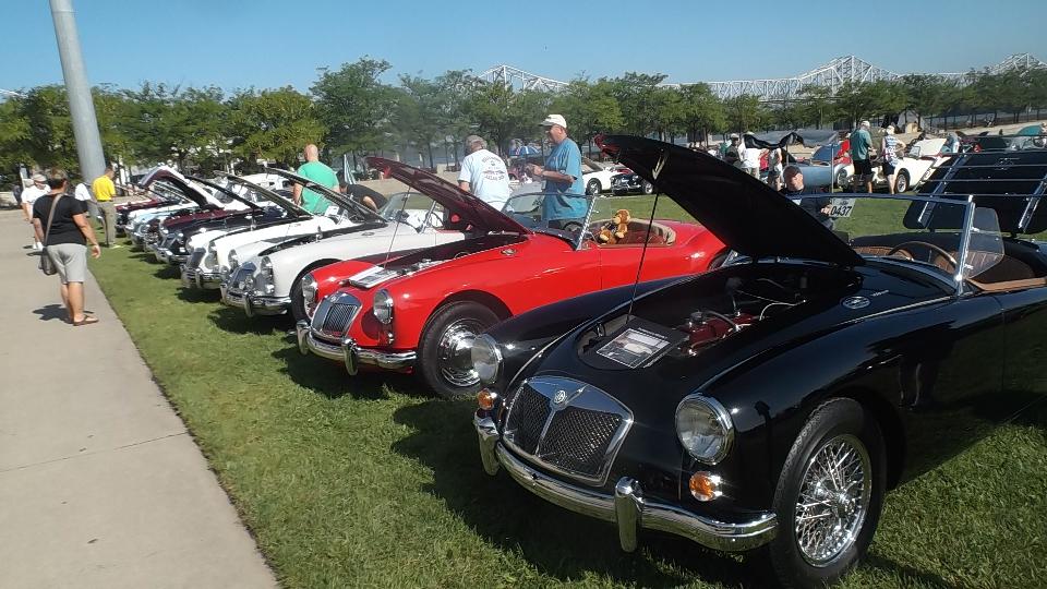 Car show day, collecting more than 800 MGs at Waterfront Park in Louisville. At the front of the crowd were a few special cars in the "Modern MGs" category, meaning cars built after closing of the Longbridge factory. There were a few MG F-TF, which are mid-engine cars beginning 1991. These were fairly popular in Canada, but not sold into the USA. Now that the early ones are more than 25 years old they can be imported into the US.