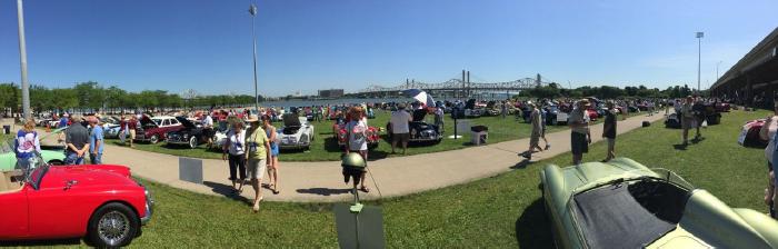 Panorama view of the North side of the show field. Hundreds of As and Bs and Midgets by the river front.
