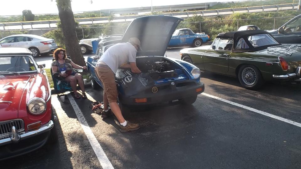 This was destined to be an interesting day. As we pulled into the hotel parking lot, about to pick up my registration packet for MG2016, there was a distressed MGB in need of assistance, before we even got out of the car. Running badly on three cylinders? Easily fixed with a spare spark plug from my tool box.